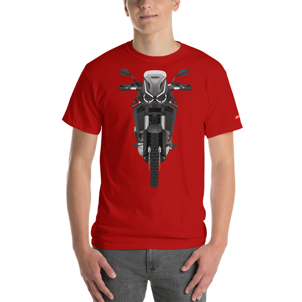 This Honda Africa Twin CRF1100 (black model) t-shirt makes for a great staple piece in any wardrobe! It has a classic fit with thick cotton fabric.